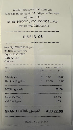 Currently Teeffee Café Ajman is running a promotion, offering a very good discounted menu where everything is between AED 1 to 20 only.