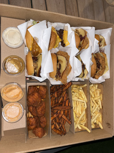 We ordered their Party Box as delivery. We got multiple burgers: the cowbell burger is great (next time, I will ask to remove the BBQ sauce though as I am not a fan and add another one), the maple sriracha chicken is amazing and the grilled cheese burger is amazing too. Their sweet potatoes and normal potatoes are great with their sauces. The chicken buffalo bites were good but nothing special. All of that for 230 derhams, feeds 4 people easily...
