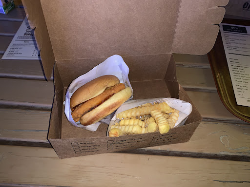 The location was very chilled ambience and design and setup was very well put together. The worker was very nice to us and the chef had a hair net and glove which I thought was very hygienic and made me trust that the food don’t have germs on it, although the food was very good I felt that the cheese was very watery and didn’t have any taste which I brought up to the waiter and he responded positively to our constructive comments/ feedback. A portion of the money I paid for the food was given to charity and I thought that it was...