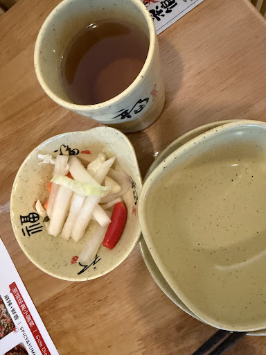 It is, first of all, a chuen-chuen style restaurant, that is food is located on a skewer and is cooked in a broth. But there are three interesting points to note.