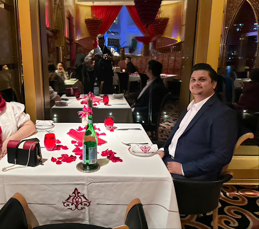 As a gesture from the restaurant they gave us two roses, thank you. I wasnāt asking for a meal to be compted because even the manager saw that I lost my appetite and stopped eating. They insisted on us eating more and offered us different types of foods and drinks because they knew that we were a bit upset. When we finally gave in to have some Turkish coffee I soon found out that we were charged for it when the bill came around.