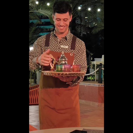 The food is so delicious, the great variety of dishes is amazing, the staff is so friendly and attentive and the atmosphere is a comfortable/relaxing vibe. A big thank you goes to the Chef, the Manager, the waiters Ernesto and Khaleel but also the rest of the team! They all made us always feel very welcome. The restaurant has a big outside area, also offering sheesha (donât worry, it wonâ bother you if you are non-smokers, like us), and kids can work around if they donât want to sit still at the table. Our favourite dishes are Hummus, Moutabel, Fattoush, Halloumi and the sea bass as well as Um Ali and Baklava as dessert.