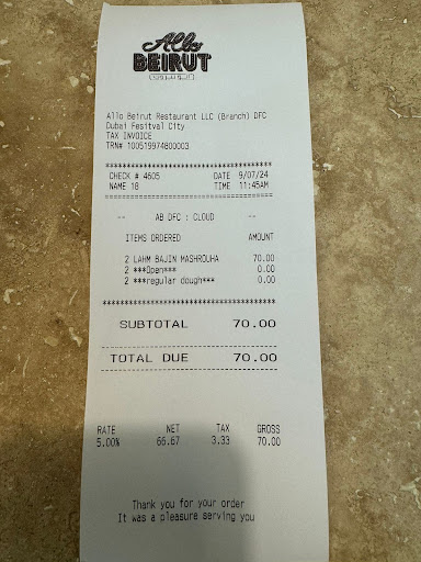 Read moreThe food's quality and the length of time it took to arrive truly disappointed us.We ordered some sandwiches, but we had to wait over twenty-five minutes for them. We are a regular customers to Allo Beirut, particularly the Al Warqa branch, but yesterday's experience wasn't as good as it is usually is. Even though we waited for a very long time,the meals were all cold, and I won't visit this branch again. awaiting quick action from the Allo Beirut management team to resolve the problems here, as it appears that the team were...