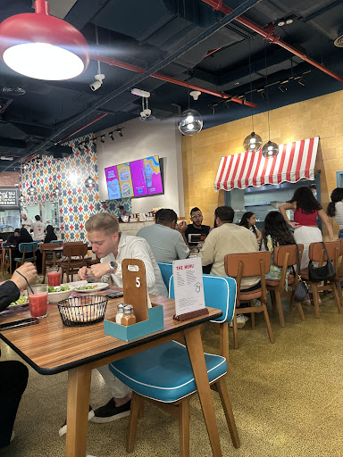 The restaurant features comfy, spacious seating, perfect for families and groups. The vibrant Arab-Lebanese theme — with traditional décor, modern touches, and soft lighting — creates a lively yet relaxed atmosphere. It really feels like a little piece of Beirut right here in Dubai.
