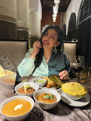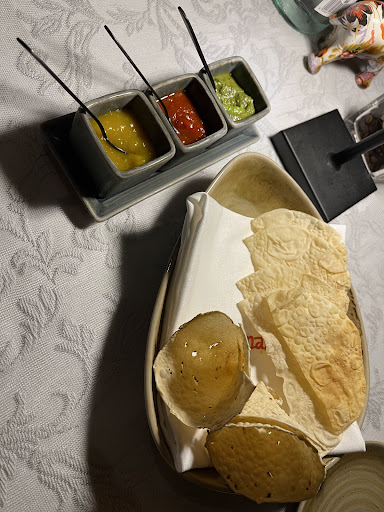 Once we got our order in (a manager finally took the order from us) the food was provided within ~20 minutes - we were given a very poor poppadom portion (for 5 guests) with a very average selection of 3 chutney flavours - which did not really stand out of the ordinary frankly. Once the food was on the table the waiters did not offer to make our plates and simply dumped it on our table and left. We were visited by the manager and another random waiter asking how our meal was going - it was going great (excellent taste here and far surpassed the poppadom freebie). We did reluctantly end up ordering more naan but at AED 25 for 3 triangular pieces, this was VERY much on the steep side, even for fine dining.