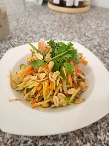 Aroy Thai in Dubai is a culinary haven that brings the vibrant and authentic flavours of Thailand to the heart of the city. Despite its modest size and limited seating, this charming restaurant offers an exceptional dining experience. The Papaya Salad (Som Tum), a quintessential Thai starter that is a balance of sweet, sour, and spicy flavours. The crisp green papaya was expertly shredded. The Spring Rolls, beautifully golden and crispy on the outside, with a savory filling of vegetables and prawns inside. Served with a sweet and spicy dipping sauce, these spring rolls were both appetizing and delicious, setting a delightful tone for the meal. The Tom Yum Soup was a standout, featuring a fragrant and fiery broth infused with lemongrass, kaffir lime leaves, galangal, and fresh shrimp. The Pad Thai, a classic Thai dish, was impeccably prepared with stir-fried rice noodles, prawns, tofu, egg, and bean sprouts. Garnished with crushed peanuts and fresh lime wedges. The Pad Thai offered a perfect balance of sweet, tangy, and savoury flavours, with the noodles cooked to perfection. The Green Curry was another highlight, featuring a rich and creamy coconut milk base infused with green chilli paste, Thai basil, and a medley of fresh vegetables and tender pieces of chicken (or seafood, depending on the dishes captured). The curry was both aromatic and flavourful, striking a delightful balance between spicy and sweet. The Stir-Fried Morning Glory (Pak Boong) was elevating the simple dishes. The crisp morning glory was stir-fried with garlic, chilli, and soy sauce, maintaining its vibrant green colour and crunchy texture, resulting in a fresh and satisfying side dish. The Mango Sticky Rice was a delightful conclusion to the meal. Ripe, juicy mango slices paired beautifully with creamy, coconut-infused sticky rice, creating a harmonious blend of sweet and rich flavours that left a lasting impression. The traditional Thai iced tea and fresh juices, which complement the meal...