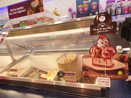 Read moreWas at the Baskin robbin at al alnahda near NMC hospital. The place some seating around 4 tables and some 10 chairs Small tables. Not large space but sufficient. We were four. The kidsnordered single scoup with cheesecake. We ordered the banana slice with double. Scoop. Neither we nor the kids were able to finish the items we ordered. Some how baskin Robbins seems too outdated and too sugary...