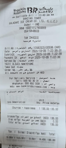 Read moreThe worse Baskin Robbins I have been to. And I have travelled to a few in the Gulf. You had one member of staff called Ashraf, who totally ignored us, and served other people who came afterwards. He was not concentrating. Plus the shop is dirty and untidy. When we asked him if he had not noticed us, he just pointed at the customer. He didn't make any sense. We just left and didn't buy anything. You need professional staff, who can keep the place clean....