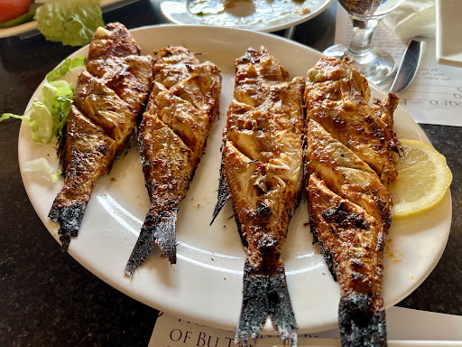 Hammour was grilled finely in spices, delivering ultimate taste. We had for 2 a fish of 1,4 Kg, crispy kalamari rings, tabouleh and fish soup. All dishes are yamm, tasty and worth each dirham of its price.