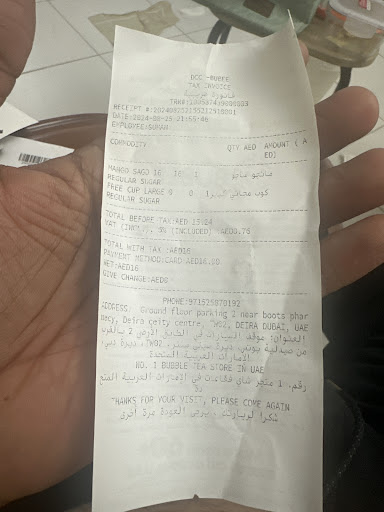 Read moreI’m the max staff i always eat bubble tea from bubee dcc even i take it of 7 diram cost always they will make delicious and the person mr suman his giving me excellent customer service also his taking very politely front of me😊again thank you mr suman for your...