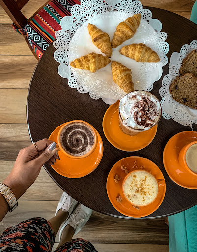 ☕Classic croissant and zaatar croissants ☕ Banana bread with raisins ☕ Chocochip cookies ☕ Peruvian Orange Blossom Latte ☕ Costa Rica Coconut Macchiato Drink ☕ St Louis Peanut Brisè ☕ Thyme Blackcurrant drink ☕ Lemon pepper pear drink ☕ Banana chocolate milkshake ☕ Al Jaziar Iced Orange Caramel