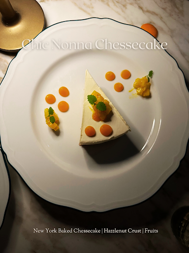 The Gnocchi Ripieni, tenderly stuffed with red prawns and stracchino cheese, and the Calamarata 2.0, a delectable concoction of Paccheri pasta, mixed seafood, Amalfi lemon, and plankton, offer a crescendo of flavors, masterfully washed down with the Grappa Nonino Moscato mixed with tonic. The finale, Chic Nonna’s signature New York baked cheesecake with a hazelnut crust and fruits is a sweet adieu that lingers on the taste buds.