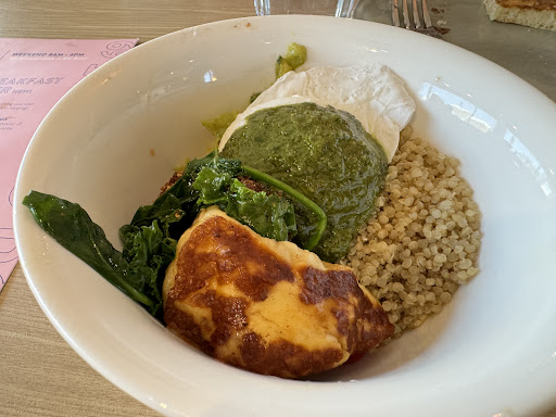 Breakfast bowl had quinoa mixed with avocado, halloumi, kale, falafel, pesto, cherry tomatoes, sauteed spinach and poached egg. It was the perfect mix to start off the breakfast experience!