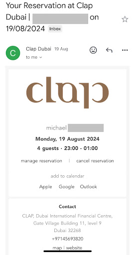 A receptionist named Alina didn't let us into the restaurant around 10:30pm, we tried to tell her that we will drink at the bar and will order some bites, she said that The restaurant was full and there were no seats left. Because we didn't book a table before and she always said that the restaurant had no available tables. With a Monday night this season in Dubai, we didn't think Clap had no empty tables and didn't want to accept customers, then we went to the restaurant's website to book a table through sevenroom - it showed us Seeing a lot of free time and being able to reserve a table from 11pm onwards, we were able to book a table online and showed Alina about the table reservation information via email. She repeatedly said that it would take another 2 hours to receive confirmation of the reservation. Ridiculous of her attempt to lie. then she had to let us inside the restaurant, then we had a conversation with a manager at the restaurant, he didn't give us a proper answer. When we entered the restaurant, most of the tables in the dining area were empty and the bar area had plenty of space to order drinks.