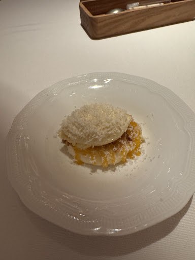 For dessert, I tried the passion fruit with gorgonzola ā an unexpected combination that worked beautifully. The tartness of the fruit, the creamy richness of the cheese, and the soft textures made for a memorable and elegant finish.