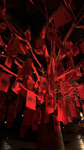 Apart from the food, Hutong had some unique touches like a lady doing Chinese calligraphy on fans. You spell your name and she would write it on a fan for you. The music was too loud for my taste, we could hardly hear each other. There was also a performance of a man in a mask and a red Chinese costume, which felt out of place, like entertainment for kids.