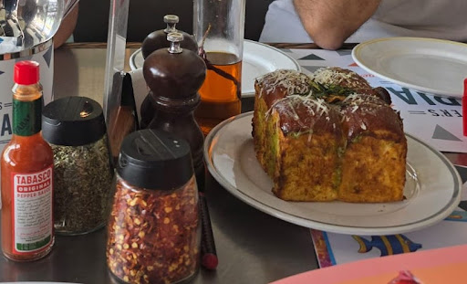 The garlic bread (which is delicious) came really quickly which minutes later followed up with one of our pizza orders. My family practically finished their pizza and then my order came out. I could not fault the taste or quality of the food however the service was poor and one of my pet hates is when your tables order doesnāt all come at once.
