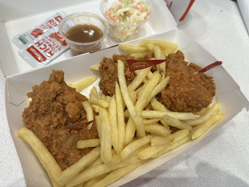 Read moreOrdered the 3 piece spicy chicken with chips. The chicken was delicious with perfect texture and was moist (the spicy was actually spicy which was fantastic). The coleslaw was quite bland and the gravy was very watery. The fries were crunchy but could have definitely benefited from salt. The lines and wait can be quite chaotic and uncontrolled. An example lf this was a woman who joined the line after me was served before me (originally there were two lines, the woman serving in her line went off to fulfil orders and so the woman who served me turns to that woman and then proceeds to serve her)….. even though that lady came after me and barely waited long at all. Also, I feel like there needs to be a better ticketing and ordering system (monitors with numbers, beepers, anything really) as it gets quite loud and you can’t hear people calling out your number. Very decently priced meals and...