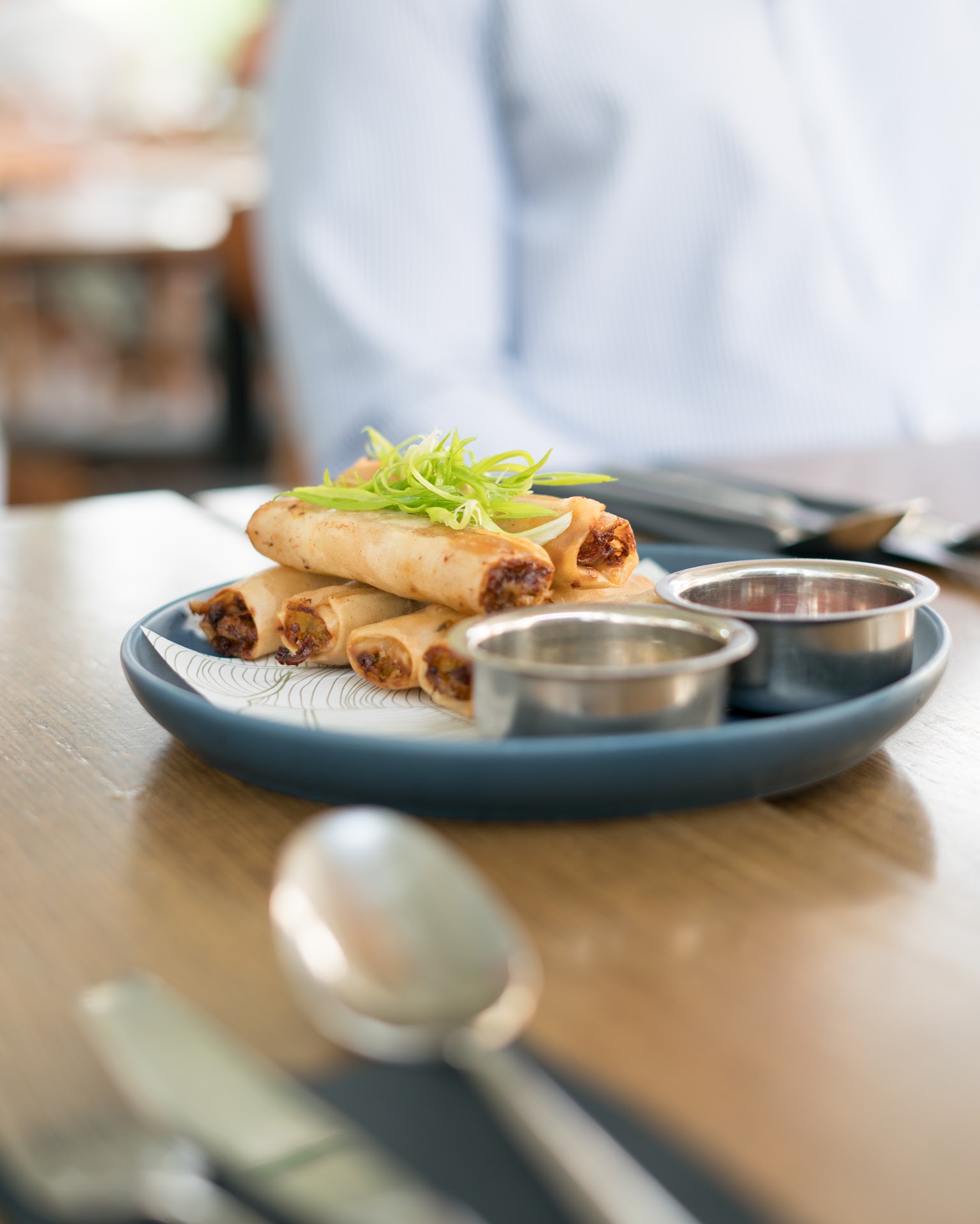 Chicken Lumpia with Shrimp: An essential Filipino starter was given a twist with the inclusion of shrimp. Crispy exterior yielded to a soft, juicy interior. A minor recommendation would be to address the edges' burnt portion by refining the folding technique.