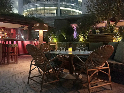 The Venue: We were given a table on the outdoor deck. The open space was nice, with the bar on one side and tables and comfy couch seating around the edges of the space and in the middle surrounding greenery. The interiors have a different vibe altogether with a bar on one end and beige lounge sofas with bright red pillows and long tables lined up on either side.