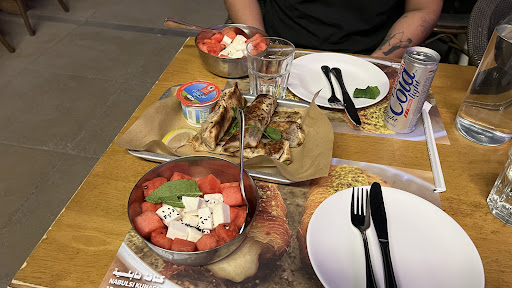 Read moreUnfortunately, a disappointing experience this eve. We decided to pass by on the way home and dine in. Had heard good things. We ordered 2x Beef Shawarma Wrap, 1x Falafel Wrap, 1x Zaatar Jabali Manaesh, plus drinks. We paid for all, but ate a third only: Falafel Wrap was super, extreme spicy, the Shawarma Wrap a little spicy. At order, there was no hint given by the waiter. Sure, food can be spicy and people's taste differ, but spiciness could be clearly mentioned in the menu or informed by the waiter. Especially when you have a child with you! We informed the waiter. I mean, perhaps the cook added too much spice this time. But no, the waiter insisted several times that we were wrong, the food was good, not spicy. Not sure how we was so sure of this: did he taste our portion before serving! Other than that, the food is OK, average. The falafel quite raw & filling but dry , the Shawerma tasted more like Indian, and the bread thick. If you like that and spicy food, go ahead! One more thing: they serve plastic cutlery, cups and plates. They didn't hear that Dubai and the world are on a noble recycling campaign! Save the planet! Seating is nice. Servers in general friendly, except that specific one! The place has good intentions but still...