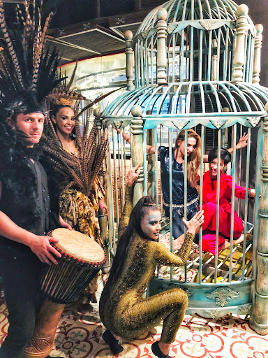 The DJ booth is a large wooden table packed with gadgets and glowing buttons. Behind it is a tiled wall with Disney-like saturated images of the rain forest and its inhabitants. The DJ’s appearance as a of Victoria Secret model is enhanced with a pair of Angel Wings and the most charming smile. Her name is Caroll and she is truly awesome.