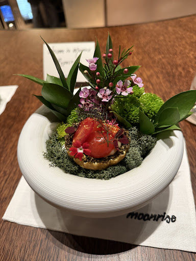 60 bites and every one of them incredible. I want to say I have been to arguably the best restaurant in Dubai this weekend. Only 12 seats and sat on top of a residential building in DIFC this experience blew my mind. It was almost like having a Mitchelin star chef cook privately for you. Every dish served was flavorful, rich and prepared to perfection and paired with wine. Right in front of you. Each dish explained, the inspiration behind it and the source of the ingredients. The atmosphere was perfect, the service was impeccable, and the food—oh, the food. A journey of taste that you never want to end. The staff learn your name and they go above and beyond to make your evening unforgettable. You're not just tasting food; you're experiencing a carefully curated masterpiece, one bite at a time. The artist behind this experience is Solemann Haddad a 26 year old university drop out, he is self-taught and set the restaurant up at the age of 24. Moonrise is two years old and already winning major awards and a Michelin star. My favorite dish from the evening would be the posh grilled cheese sandwich. Made from Hokkaido Milk Bread sourced from a local Japanese bakery, a carpaccio of single clove Thai black garlic and an emulsion made with black pepper and a 30-month aged Parmigiano Reggiano. It was so good when I joked I wanted another one, they made another one up for me within minutes. Dubai is a melting pot of cultures, yet sometimes I hear Dubai has no culture, it is soulless. That is not fair or true. Dubai has grown up fast, it is a city that has a vision and a goal and it people like Haddad prove how unique...