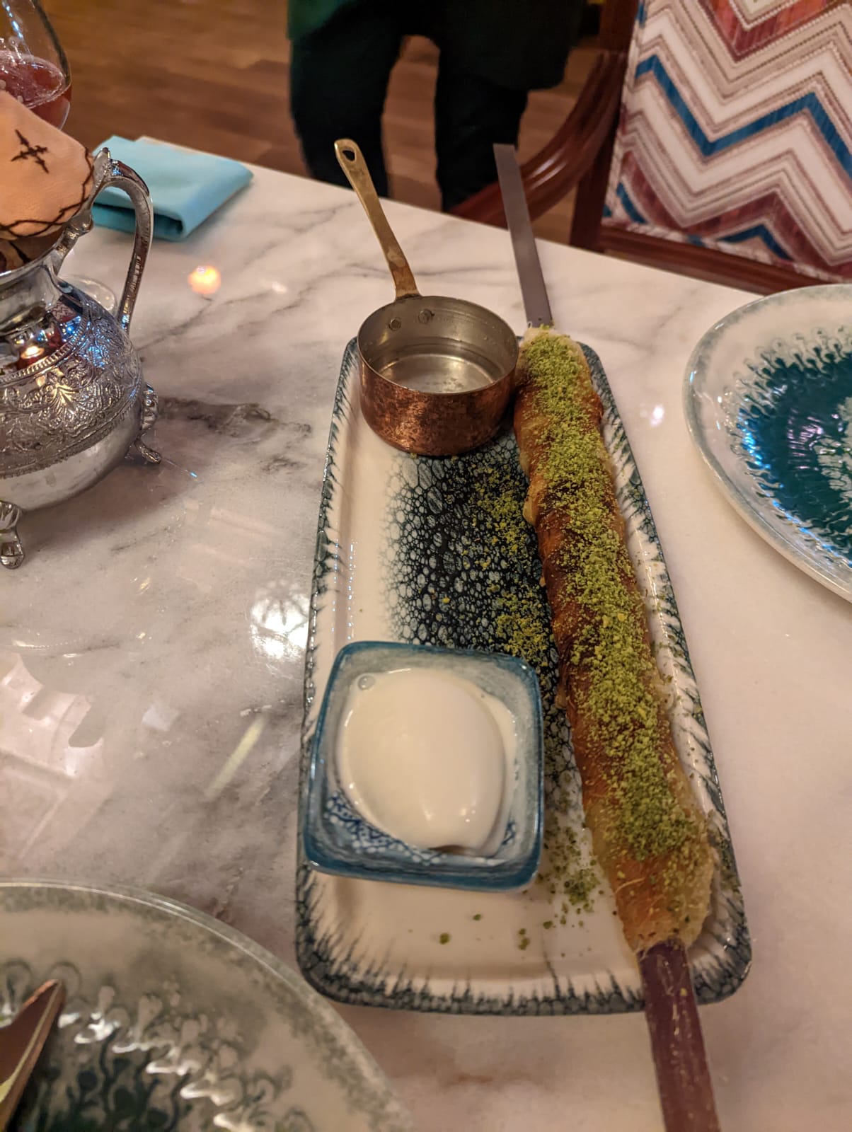 Since everything was so good - we couldn't not take dessert and took the grilled kunafa skewer with the Moroccan mint tea (more than enough for two) - and it was an exquisite way to close the meal - including the way it's served & the presentation.