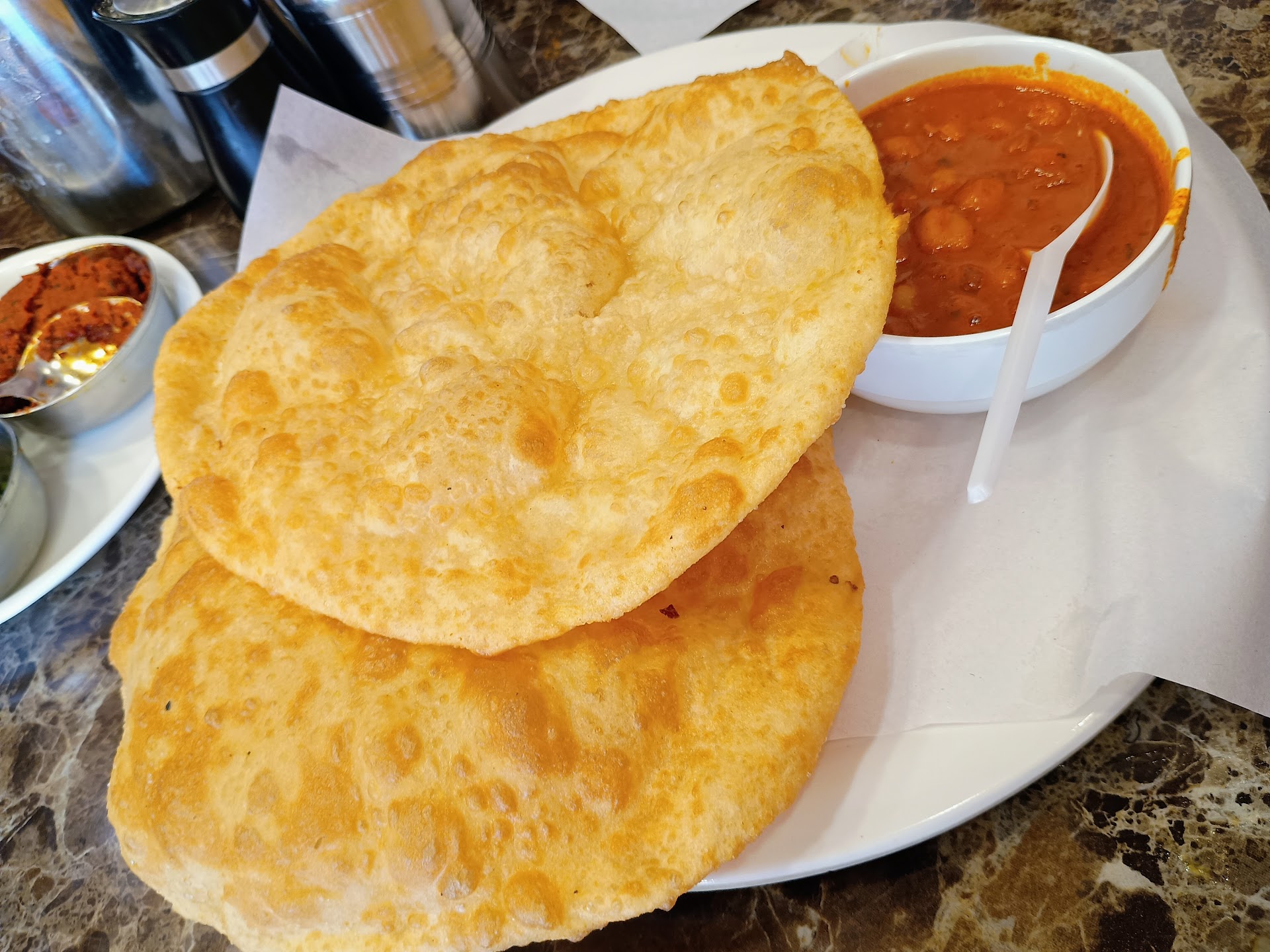 Read moreI am truly stunned by what I tasted here. This place shows how pure cooking skills will add so much flavour to the dish we prepare. Every dish they prepare here is well thought of and flavours are nicely balanced. I tried the breakfast and I was so happy with the taste and quality. I was craving for some Indian food in Dubai and I found a rite place. The owner of the shop is very friendly and ensures the guests are comfortable. The Chole Puri was amazingly delicious. For every table they offer pickles, chutney and fried chillies which just multiplies the overall taste. Last but not the least the place has total Indian vibes, Indian songs , postures and many...