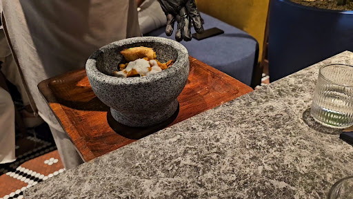 When we finally received a table, there was a very strong spotlight directly above me that caused discomfort and a headache. We requested to move, but the manager informed us that no tables were available. When we asked about a table next to us, he explained it was reserved. His exact response to our suggestion of leaving was, “I said wait, I didn’t say leave,” which felt unprofessional. We were eventually moved to another table.