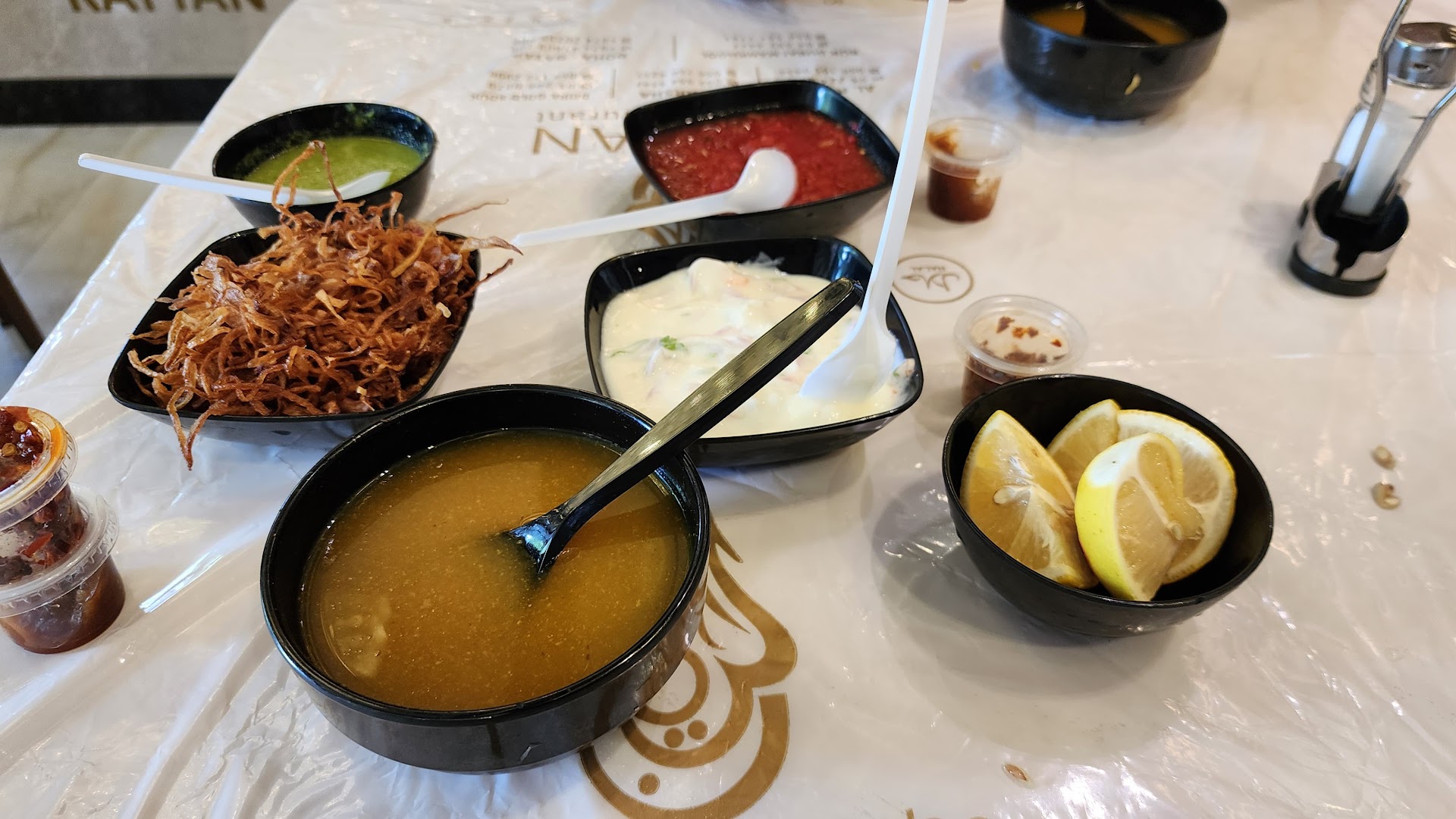 The chicken and mutton mandi were absolutely delicious and it came with their assortment of sauces including red tomato chutney and green chutney along with sides like raita, dates pickle, and crushed red chilly paste. The mutton soup was exceptional and I wanted to have it more!