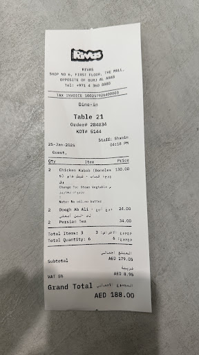 Overall, my experience at Rivas was disheartening. The owner's unpolite demeanor and lack of personality left a sour taste in my mouth, which was only exacerbated by the subpar food quality. I would strongly advise anyone seeking an authentic and enjoyable Persian dining experience to look elsewhere. There are far better options available in Dubai that showcase the true essence of Persian cuisine and provide a more pleasant dining experience overall.