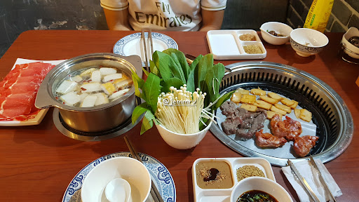 We had a most breathtaking experience of gastronomic pleasure here last night. We searched for good hotpot places and arbitrarily chanced upon this place after reading the reviews. This was our first touchdown with hotpot and it was superhit. The restaurant is very typically chinese starting from the outside to inside. All the internal decor with high dark open ceilings to abundance of chinese lanterns of different sizes and artforms with nice nooks and corners- a delightful place. The staffs are a class apart- remembering Mr. Rehan, Mr. Ali, Ms. Chang here- all of them when we may need something and how to guide us. They do have ala karte options too whih might suit many diners. The menus were very colourful and with pictures depicting the items- which is of great help. The Hotpot comes in Spicy, Basic bland and a mix of both -versions, we took the mix where the pot has two distinct separate sections of spicy and bland versions. After having both the versions- I preferred the bland simple side more. You can put 42 types of raw fresh food of veg and nonveg varieties in ready to cook slices , in the pot and cook for roughly 15 mins- when it gets ready. After that you can continue putting items as per your choices and this can go on with unlimited quantity. There can be a small restriction though- if it's busy, the time limit is 2 hrs and also please don't take anything you can't eat- basically don't waste. So plan your meal beforehand, if possible. There are around 6 types of barbecue grills in this package which includes fish and chicken among others. Also 4 types of desserts- chinese sweets , and a soft drink. The sweets included sesame balls and potato balls with purple yum stuffing. I have heard about the golden buns but it was not to my liking. The total of this unbelievable and humongous menu is only 49 dhs per person. It's an earth' shattering price and we recommend it absolutely. Theare some combinations of raw spices which can be put in with mixtures of different quantities to produce a most delectable sauce. This sauce is to be added to the cooked items and savoured to your heart's content. Our most favourite items were Crabs, Crab balls, Australian lamb, Chicken fillets, Kankong greens, Fish tofu and so on. We took second helpings of the crab balls and BBQ chicken wings too. They also had at least 3 types of Mushrooms, squid, crab sticks etc. Authentic cutleries added to the traditional values and experience. I had a Plum drink from china, which was separate from the soft drinks and it was at 8 dhs for a large bottle. The walls are full of praises and heartfelt outpourings of love from very satisfied customers and we too duly added our notes of appreciation to the wall arts as well as to the staff columns. We were really touched by the personalised services and very helpful attitude with smiles from all the staffs. We wish all the best for their success and...