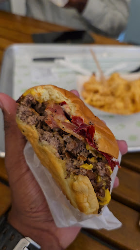The Roasted Garlic Mushroom Burger was a delightful surprise. The addition of roasted garlic and mushrooms brought a rich, earthy depth that paired beautifully with the beef, making each bite indulgent. The ShackMeister, with its signature crispy onions, added a nice crunch and a savory twist that enhanced the overall flavor profile. The SmokeShack, with its smoked bacon and chopped cherry peppers, delivered a smoky, tangy kick that balanced out the richness of the beef perfectly.
