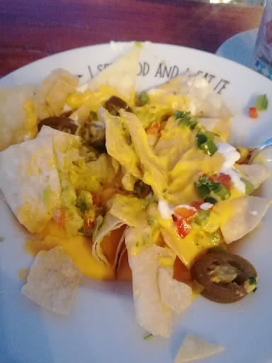I went here to see the sunset. My mistake 'cause from there is just impossible to appreciate it. It has a nice view to the creek tho. The place is narrow but cute. I needed to get to the bar to ask for the menu and get service. I wanted a limonade and all they have is a bottle Barak lemon juice who costs around 7usd which ain't that much, but for a brand juice that I can get in the shop? Anyways... I ordered some nachos. And I was totally dissappointed with this zero appealing nachos. Soggy unflavored tortilla chips, with and old, gooey unsalty yellow cheese, rancid harsh guacamole and few chilis, all arranged in the most unpleasant way. I tried to eat them as I was kind of hungry wanting to snack on something.. But I just couldn't. Paying for these was so depressing, they didn't...