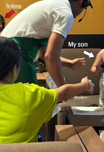 Long post ahead‼️ Worst experience with a crazy customer who was allowed inside this shop. First, the crew did not ask me if we were going to dine in or to go, but it's fine, and we can still manage to dine in, since it's just a small thing to handle. However, when we started to look for a place to sit, there were vacant chairs beside a woman with her feet resting on the table with her shoes. So my daughter and her friend sat there thinking maybe this woman would put her feet down since this woman had already finished her food (and she was alone sitting at a four-chair table), but she stayed still. It’s okay, we don’t mind because this is a public place and everyone is allowed to sit anywhere they want. Then my son sat beside this woman (the woman’s bag was also on the chair where my son was about to sit) together with her sister and me with my husband seated at another table beside them. When my son’s muffin was done heating (it was in a paper bag because the staff thought that we were not going to dine in.) I took it to my son’s table beside the table where this woman’s feet were, and I tried to ask that woman to move the table because I want it to be a little bit far from her (because of her feet), but she was ignoring me. Three times I talked to her, but she was focused on her phone, and I even touched her just to move, but she didn’t care, so what I did was I move the table (where her feets on) into her direction. I walked to the staff member and asked him why they were allowing this customer to put her feet on the top of the table with her shoes, but the staff member just told me that the woman came first with his face like he couldn't do anything. What??? This is a place where people chill, eat, and relax. Then you will see this kind of scenario. Like hygiene, manners, and respect for the food and people around are gone. Moving forward, my son started to eat excitedly (he was the one who asked us to go) and suddenly the woman’s plate fell down (she intentionally made it fall because she started making a scene because of my 5-year-old son, who was sitting beside her), and the staff started to take action. He took the plate and told the woman to put her feet down. She did, she actually put her feet down, but minutes later she discarded her iced drink to my son’s chair (intentionally again). In our shock, we asked her why she did that, and she just said, "I'm sorry." Many times. Okay, she was sorry, but we are not stupid. We let it slide because after that she left the store. The staff came back to us and apologized for what happened. He even changed the chair and gave my son one that was not wet, and we stayed peacefully. A few minutes later, to our surprise, that woman came back, walking directly to the chair she left and sitting and throwing her bag on the top of the armrest of my son’s chair, and, of course, my son was hit a little, and all of us got mad at her, asking what her problem was and what she was trying to do. We even told her that my son is a kid who only wants to dine there. And what she kept saying was she did not know, and sorry, sorry, sorry, sorry 🙄. I was very, very mad, and I called my son and hugged him. So this woman walked outside again, and like before, this woman returned and tried to explain, saying she was not wearing her glasses and she did not see my son was there. Very unbelievable, like Hello, there is a table and a chair where she could put her bag, but she chose to throw it beside my son, which is not good at all. This place is not safe (for both kids and adults) because the staff tolerate this kind of behavior. That woman is acting like crazy or a child who doesn’t get what she wanted. FYI, we didn't stay that long, we only let our son dine in SB and ate his muffin because that's what he wanted (even without a plate, and the staff didn't bother to give us one even though they saw my son eating). You can check your CCTV camera on May 5, 2025, from around 11:30...