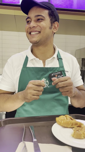 Staff here is the worst.. RUDE and very unprofessional.. come here daytime or late at night.. its like a contagious stuff with this location.. yesterday I was served a cheese croissant cut into two parts WITH 1 part hanging out of the plate as if it was thrown into the plate.. and see the cutlery how its half down in the tray, out of the tissue .. and as I started taking food n his pic, that smile came up immediately.. which was reluctant while v walked in.. no greetings, no nothing.. and he tells us they do this cutting all the time.. I go around to many Starbucks around town and never have this kind of tea stall staff anywhere else.. why no one here is interested to work here at this joint.. WE...