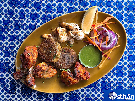 Letās move onto our favourites, going through their menu had us craving for a lot of things all at once, but finally we settled on- āSthan Signature Kebab Platterā: this famous street grill consists of Chilli Milli Tangdi(chicken drumsticks), Shami Kebab(flattened pattyās), Murgh Malai Kebab(chicken marinated in cream and grilled) and Murgh Abhir Tikka(chicken marinated in spices). We loved these kebabs, so tender, succulent, spicy and full of aromatic flavours. Just squeeze some and dunk emā into the chutney and your tastebuds shall do the rest.