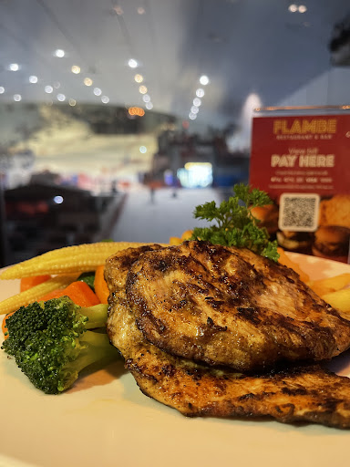 FlamBe is a casual restaurant and bar in the Mall of the Emirates with a city scape type of atmosphere and a great view of Ski Dubai. The menu features a wide variety of dishes, including burgers, pizzas, pastas, salads, and seafood, as well as a number of vegetarian-friendly options. The nachos are a popular dish, and the staff is friendly and attentive. Overall, FlamBe is a great place to go for a casual and enjoyable dining experience with...