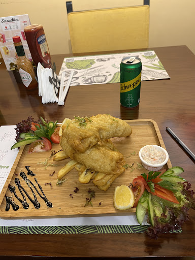 We ordered fish and chips, cheeseburger and mozzarella sticks. The food was looking stunning- big portions, nice garnish. With the first bite I was disappointed. The fish didnāt have any taste and it was super soft. I would say like watery mashed potatoes. It must have been frozen. It was served with tartar sauce, but it didnāt taste like tartar. I think it didnāt even have pickles. Mozzarella sticks were kind of empty inside, but the sauce was very tasty! Seriously it goes great with the sticks and even with fries. Yummy! The burger meat flavour was super strong, but I donāt even know what to compare it to. It wasnāt any specific spices, but taste like one of those poor quality āvegan meatsā.