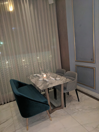 Ambiance Simple yet posh is what describes the ambiance here the best. The interiors are very rustic with a modern twist. The lampshades have an engraving that is not to be missed, the original chandelier, the intriguing paintings, and the blue walls. The key is in the details here, which can be missed so easily. The place has a calm vibe to it, that makes it perfect for a dinner concentrated evening.