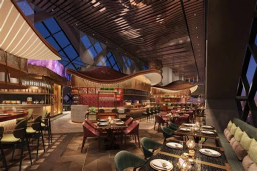 Il “Bridge of Love”, una galleria artistica digitale, unisce i livelli, mentre Sphere offre musica, cocktail e atmosfera lounge dopo cena .