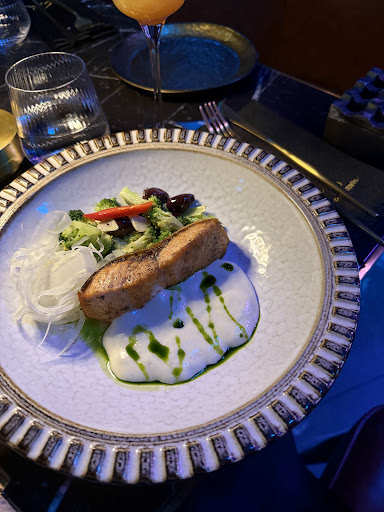 We were treated to a delightful mix of live music and karaoke — both incredibly entertaining and professionally curated. I started my evening with a classic Caesar salad, which was fresh, flavorful, and beautifully presented. For the main course, I had the grilled salmon, which was cooked to perfection. The sauce was divine and paired wonderfully with the steamed vegetables on the side. To sip, I chose a cocktail followed by a glass of white dry wine, both of which complemented the meal superbly.