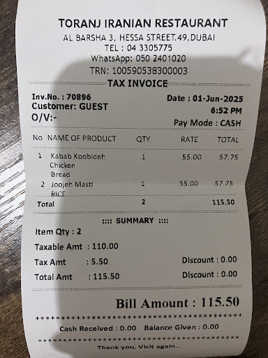 Read moreAli Reza great service from Toranj because of this guy