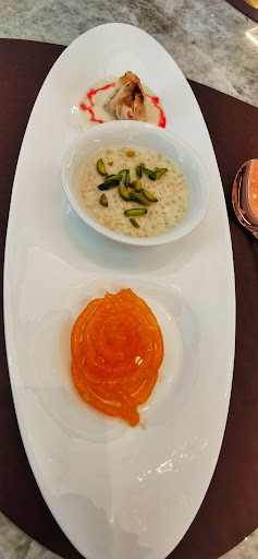 Read moreVarq at the Taj exotica is rated one of the best restaurants doing Indian food in Dubai. It lives up to this billing and more with an extremely unique menu that titillates the palate with authentic Indian flavours but with its own signature style. This is with an extremely welcoming atmosphere where the team make you feel welcomed and then go the extra mile to look after you. They are extremely knowledgeable about the dishes and one gets a good idea of the flavours. We started with the Vegetable trio and 3 chicken 3 ways trio as appetizers. We were offered an interesting take on mini idli with a tamarindy sauce. The murg makhmali and paneer were exquisite. For the mains we ordered Purvanchal Bhaji a unique take on methi saag and mandua roti. (Presentation pictured). The presentation is flawless and effort expended is amazing. It's add to the flavour which is smooth on the palate. The chicken sirka pyaaz just melts in your mouth with the hot panchdhan roti. After the meal which did not feel heavy at all we settled on Doda burfi pictured. PS the Sorbet like nimbu pani strikes a sweet sour flavour that's just right. Note every bit of the presentation is something to savour including the beatroot leaf papad and panjiri.