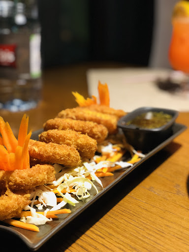 And now it’s time for us to show you some of the best Asian fusion food around UAE. We had an extremely lavish meal. To be very honest it was very hard to choose from their extensive menu. Asian food is a cuisine we both relish to our hearts content. Probably thats why we run to South- East Asia every chance we get. So please understand our excitement when we heard they have papaya salad and Tom Yum Soup!!!! So of course we had to have that, but like we said it was all fusion and a vast menu! But wait, thats not all that we tried. Along with these we had the Crispy Calamri, Signature Dynamite Prawns, Lamb Shank, Sambal Gorang Samudra Wok, Seafood Curry and Cantonese Fried Rice. In dessert we had the Tiramisu Pastry with shot of an Espresso. Must have is the sea food curry and...
