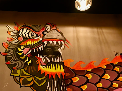The interiors were simple with sit down arrangements as well as high chairs with long tables. The walls had a giant dragon painted on it which was all around the restaurant. The music played was very upbeat and up to date.