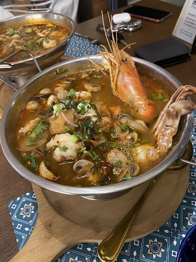 We had the Mango salad âgreen mangos with peanuts & onions, very deliciousâ & shrimps cake for appetizers , Khao soi beef âthe curry & noodles were exceptional , wouldâve been much nicer if we took the shrimps or chicken as the beef wasnât that greatâ , pad thai shrimp & the seafood bucket .. for dessert we had the mango sticky rice âthe mango was fresh & sweetâ would however suggest not to add the blue coloring for the rice could be a personal thing but it did effect my perception of the taste & the Bingsu red tea was a first time try & it was quite nice & refreshing. Would definitely be visiting it again...