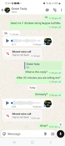Read moreThey confirmed my order and after 20 minutes they are saying "item is finished " Poor service!!!! I asked them "why are you telling me after 20 minutes"? And his reply is "just repeating option of food than considering the mistake that he has done.