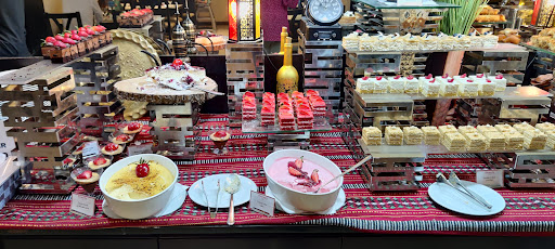 I chose this restaurant for buffet dinner for my family and a friend making it 3 adults and 2 kids ( age 5 and age 1) .I really wanted to visit here as one of my friend suggested it.It is a wide restaurant with sesting capacity of more than 200 pax.the shape of restaurant is a rectangle where one of the lenghth side is the buffet setup and other is the seating.which is divided in 50 pax each.Bit old fashioned but i dont mind visiting old places because we relive that style. 👏👏 So as we entered the restaurant we were welcomed by Eliana with her pretty smile she chose a perfect round table for us. As we started with dinner. First was the bread section which had all possible choices like multigrain..brown..sliced and loaf.. and buns ..and bread rolls ... Next was salads.They offered more than 12 variety of salads both arabic and italian and indian.like Pasta salad ,tabouleh and fatoush Potato and mango salad,chicken salad,shrimps salad.They do had a seperate section of make your own greek salad. The most we loved was olives.they were so juicy ..and ripe..i felt like i was having big grapes..super amazing..i wish i knew where they purchased them from. For pastes they offered Moutabel hummus,sour cream Sauces etc all were on buffet. Next was soup.. There were two varieties chicken soup and lentil soup. Next was starters.. There was pakodas,spring rolls and cheese manakeesh For main course they served Biryani,steamed vegetable,tossed potatoes,pasta in white sauce,lamb okra,chicken korma,chicken mandi with a tangy tomato chutney,lamb kofta and potato,beef ala chilli Also they had choley ,dal makhni and white rice seperately in vegetarian options. I couldnt find any drinks to grab so we ordered watermelon juice and fresh orange juice for kids. As my little one wanted pasta in pink sauce with olives we requested chef Tabil for the same and was very courteous in preparing that according to my kids choice. Next was deserts It included various variety like chocolate fudge cake,umm ali,vanilla millefiulle,devil cake ,spiral arabic sweet dish,fruit salds..and many more..more than 15 deserts were on buffet both cold and warm .plus the ice creams.The serving staff was all smiles all the time . Mr Manzar the Manager was kind enough to suggest various options for drinks.later we had cafe latte and my favourite chamomile tea with honey.Thank you to the whole team for your courteous hospitality and making people to come back again and again for such an amazing time. Thank you and all the best to the whole team for their hard work and excellent service . Ill definitely be back and will recommend to our family and friends . For more reviews i can be followed on...
